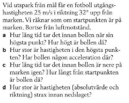 på d) varför är hastigheten och vinkeln detsamma som begynnelsehastigheten samt vinkeln?