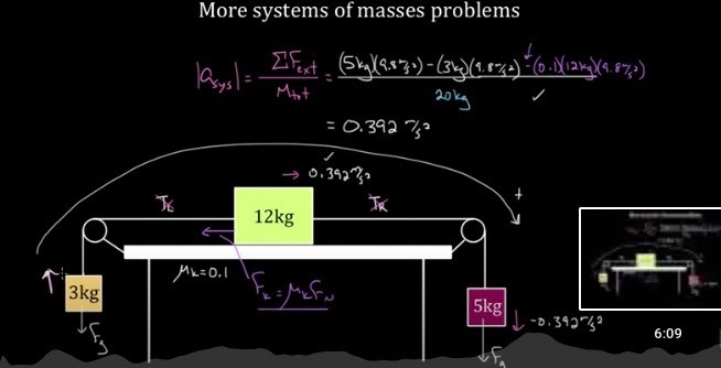 jo jag förstår det men hur kommer det sig att man plötsligt byter till att nedåt blir negativt i svaret? Borde inte alla accelerationer vara positiva istället för alla rör sig åt samma håll dvs mot 5kg vikten