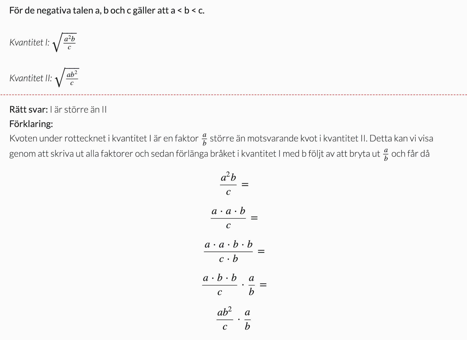 För lösningsförslaget måste man förstå att samtidigt som för att förstå att vilket förmodligen är åtminstone lika svårt som att ställa upp uttrycket med konkreta siffror. Att bara betrakta "faktorn a/b" och säga att den gör ett tal "större" fungerar inte.
