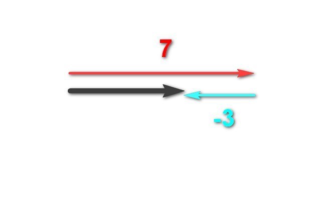 4 är 7-3, som är 7 + (-3). Vi har lagt ihop en 7pil och en -3pil
