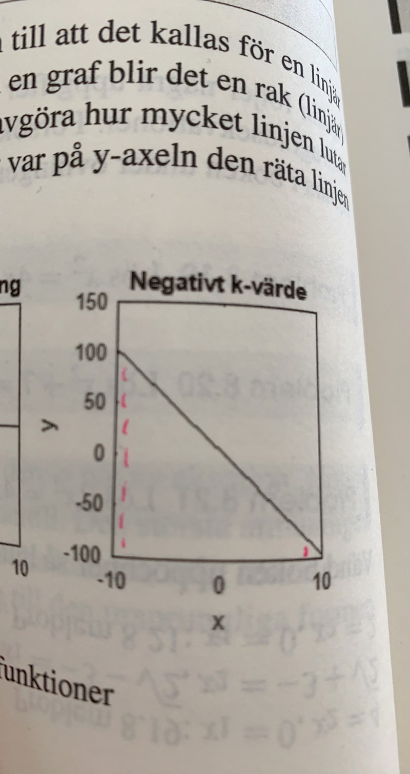 Jag väljer ut två y värden och två x värden = -100 - 100 /-10 -10 = -200 / - 20 = 10