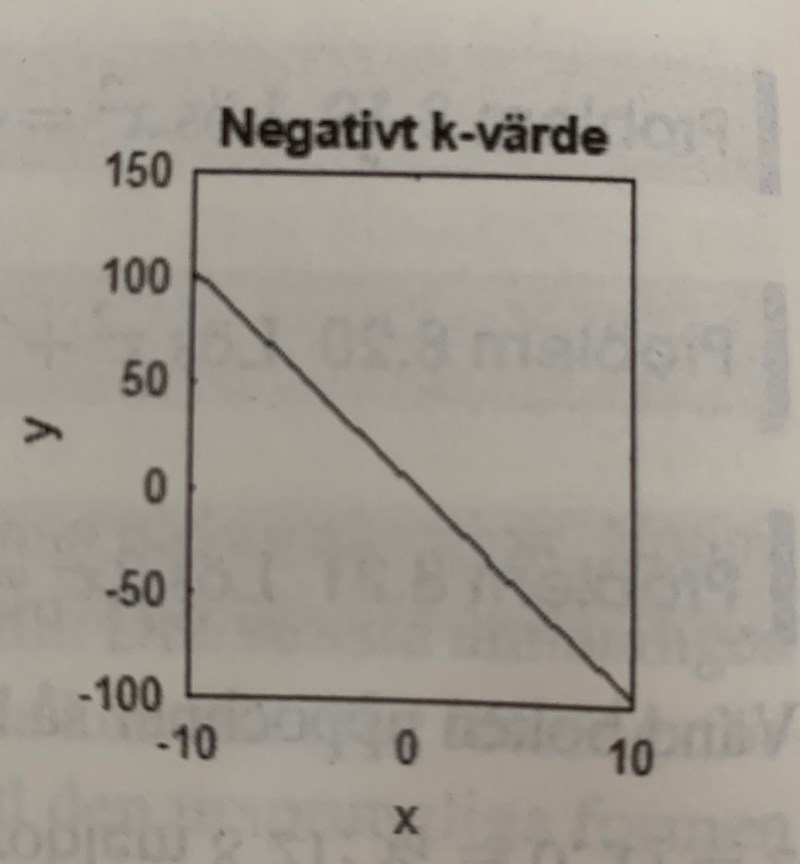 Om du t.ex. väljer att (x1,y1)=(-10,100)(x_1,y1)=(-10,100) och (x2,y2)=(10,-100)(x_2,y_2)=(10,-100) så får du att k=y2-y1x2-x1=-100-10010-(-10)=-20020=-10k=\frac{y_2-y_1}{x_2-x_1}=\frac{-100-100}{10-(-10)}=\frac{-200}{20}=-10.