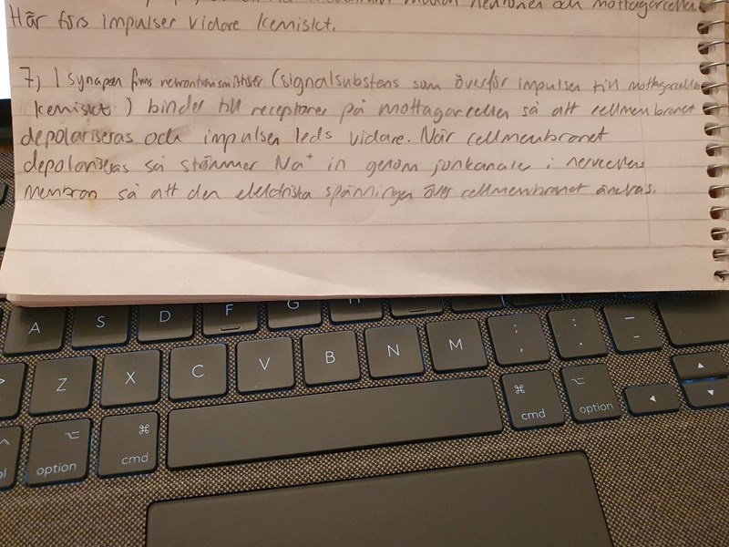 Beskriv hur en nervimpuls överförs från en nervcell till en mottagarcell.