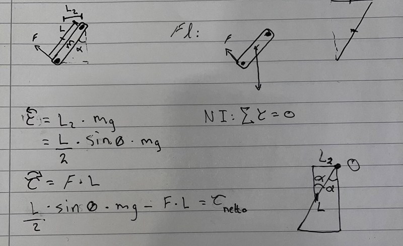 Jag har löst den genom att ta fram momentarmen för mg och sedan subtraherat det kraftmomentet som verkar medurs för att beräkna nettomomentet. Det är någonting vi har gjort fel, kan nån hjälpa mig med det?