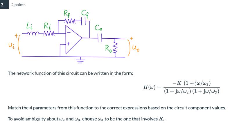 I denna uppgift ska jag bestämma vad w1,w2,w3 och w1 är. Vad jag förstått är feedback impedance Z2 och input impedance Z1, men jag förstår inte var C0 och R0 bör vara:
