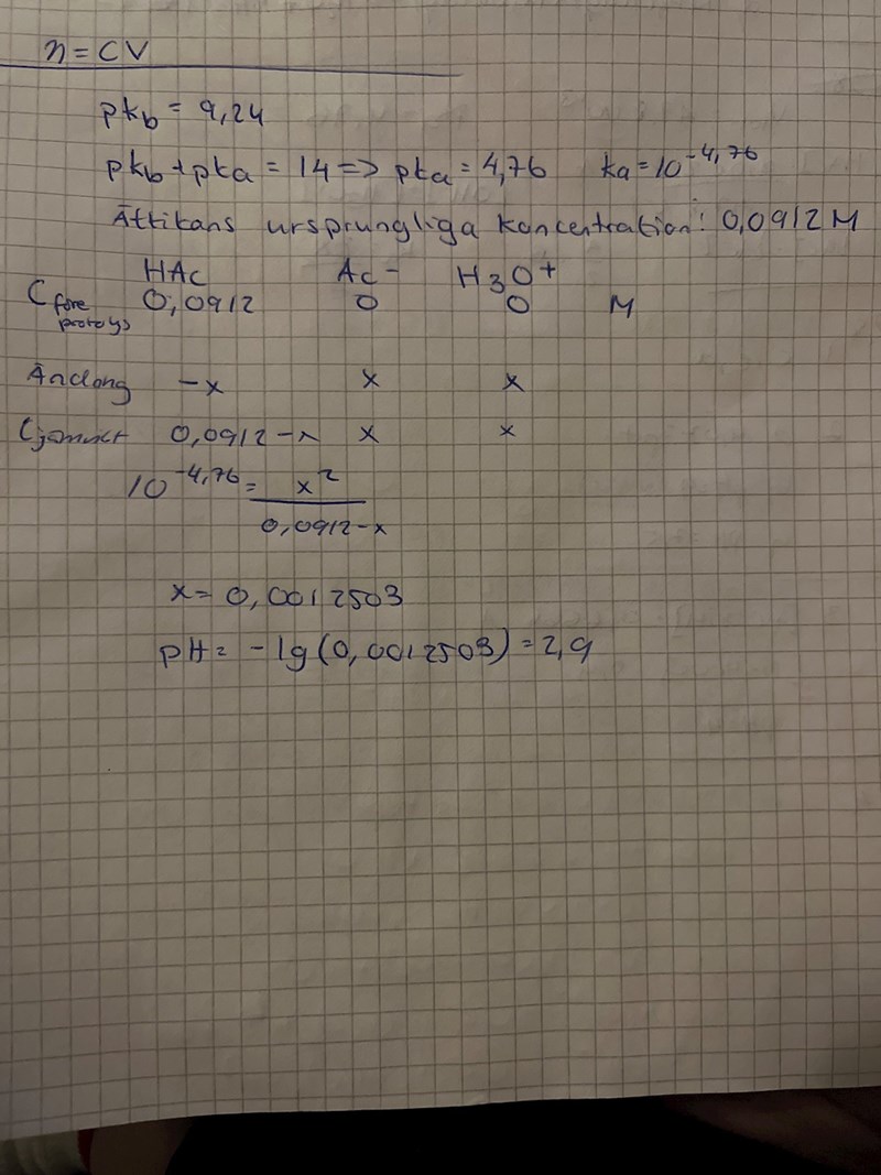 Hej, jag förstår mig inte på neutralisation. Jag gjorde flera försök på uppgiften men alla blev fel. Den lösningen nedan är hur jag gjort med andra uppgifter men jag är fortfarande ute och cyklar. Hur ska jag göra? Delfråga b