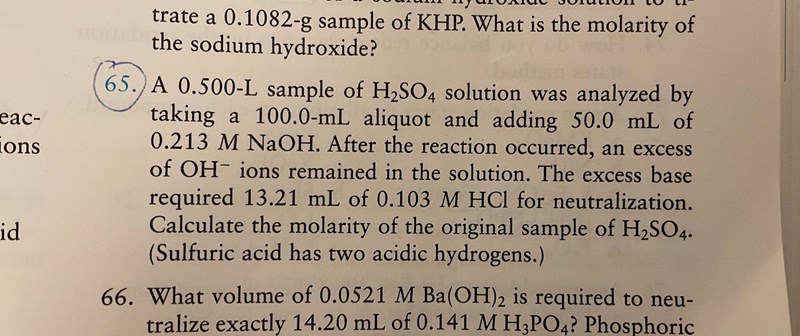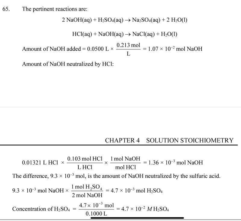 så som jag tänkte att man löser uppgiften var att enbart räkna ut substansmängden för natriumhydroxid och sedan kolla på förhållandet mellan svavelsyra.