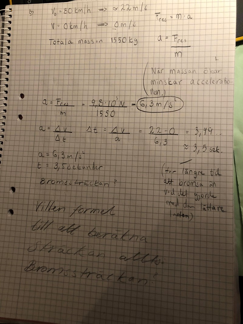 Vilken formel bör jag använda för att beräkna sträckan för bromssträckan och varför bör jag använda den?