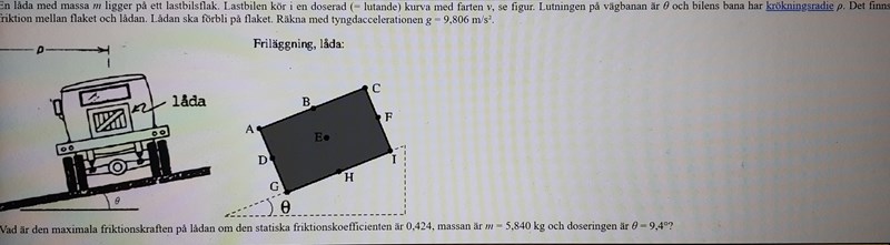 Ture skrev:Eftersom man frågar efter maximala friktionskraften är lådan på gränsen till glidning!