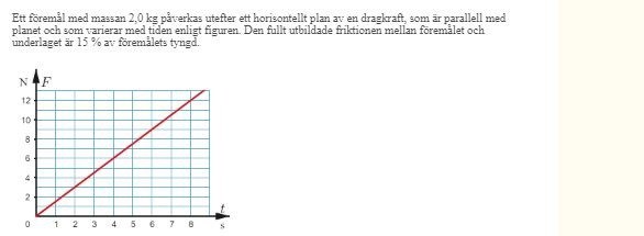 Jaha och den börjar inte röra sig förän vid 2 sek!! Och därför vid 2 sek - 3 N och vid 6 sek= 9 N