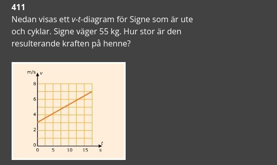 Den resulterande kraften borde då bli a x 55 = ca 3,9 N.