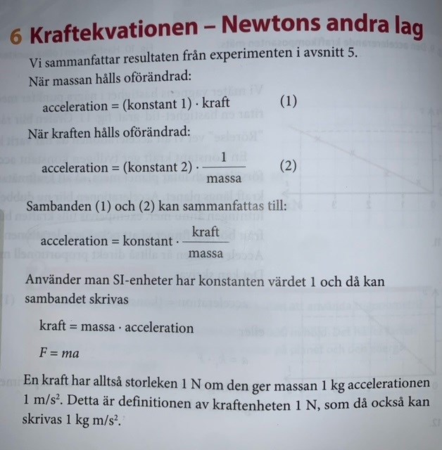 Jag förstår inte riktigt härledningen till F=ma, där det står att ekvationen (1) och (2) kan sammanfattas till en annan ekvation. Jag ser inte hur det kan sammanfattas på det viset.