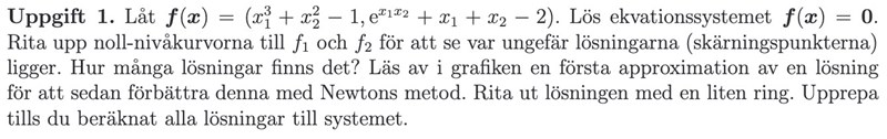 Jag har kommit så långt som att rita ut noll-nivåkurvorna och har därmed hittat två approximativa lösningar.