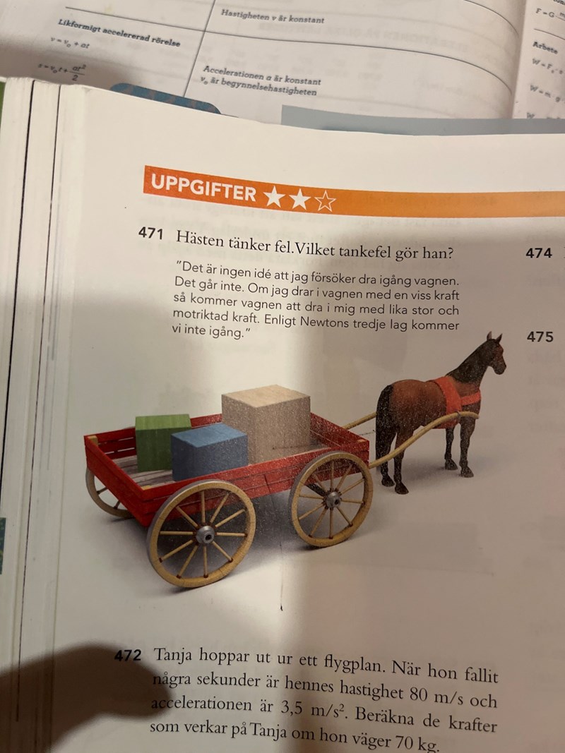 Jag fattar inte riktigt förklaringen, eller det är ju två krafter som verkar på varandra? Häftan går en kraft påverkar den och det påverkar 471.