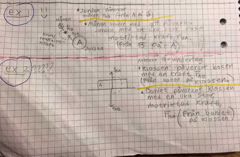 Micimacko skrev:I första fallet är kraften de pratar om gravitation, som drar saker mot varandra. I andra exemplet håller underlaget emot så att prylen inte faller, och prylen dras nedåt mot jorden. Lagarna gäller oavsett vilken kraft man har eller vart den är riktad.