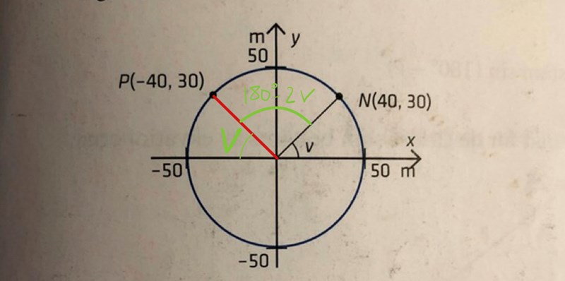 Du har redan räknat ut vad vinkeln v är. Du vet att vinkeln mellan N och P är 180˚ - 2v. Blir det 90˚?
