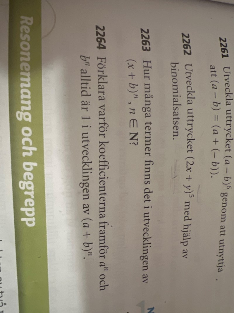 nivå 1 uppgift, binomialsatsen