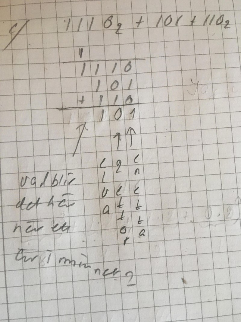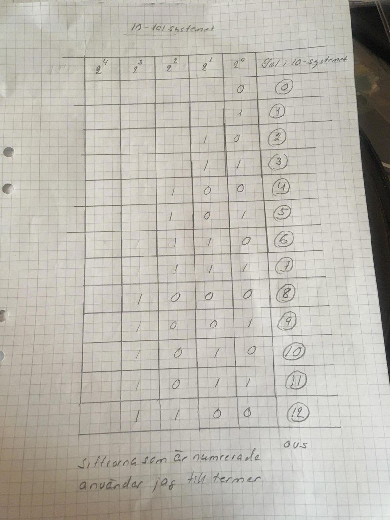 Om jag nu adderar så att två ettor ger nolla. Hela det här systemet är upp o ner. Står inget om i min bok, hur man går tillväga.