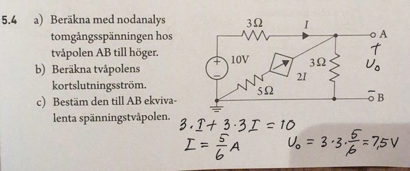 Jag skulle behöva hjälp med följande uppgift. Den beroende strömkällan ställer till det för mig. Hur ska jag lösa uppgiften?