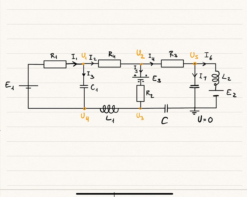 Varför skall man göra nodanalys på en sådan här krets? Vad skall beräknas? Finns det komponentvärden? Fem okända spänningar och sju okända strömmar känns lite tungt.
