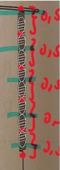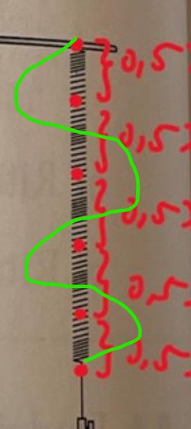 Hej! Jag har problem med att avgöra hur många våglängder stående vågor har. Fick hjälp på en tidigare uppgift med detta problem, men när jag försöker tillämpa det jag lärde mig då så funkar det inte i denna uppgift. Jag har ritat in röda punkter där jag tror noder finns. Tänker jag fel?