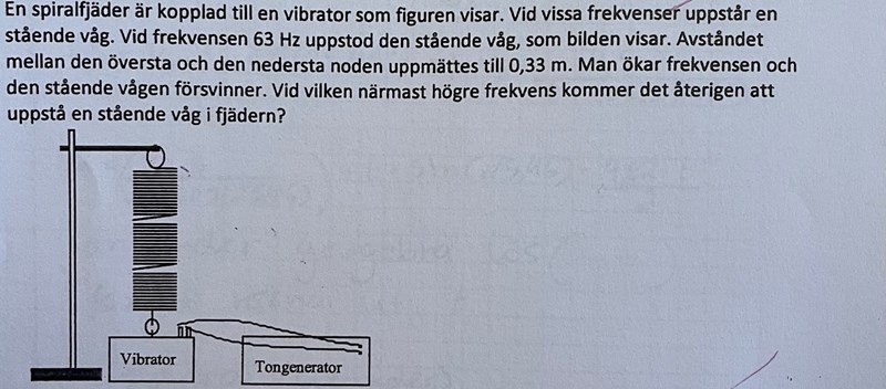 Det står även vid vilken frekvens uppkommer nästa svängningsmönster. Då kan vi ju anta att de menar en till våglängd. Eftersom svängningsmönstret är ju 2λ= 68Hz . Varje mönster är 34Hz som är lika med 1λ.