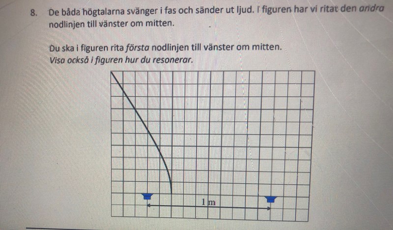 Det jag tänker på är att den andra nodlinjen är 0.8 m bort från den andra högtalaren. Samt andra nodlinjen har våglängden 3λ/2.