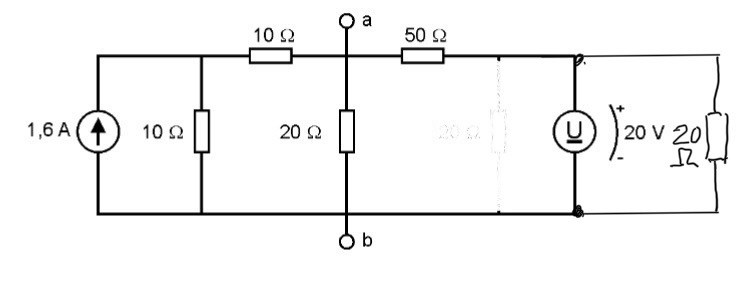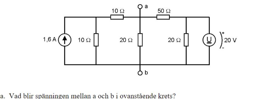 Ritar man om kretsen som nedan inser man att 20 ohmsmotståndet inte påverkar det som sker till vänster om spänningskällan.