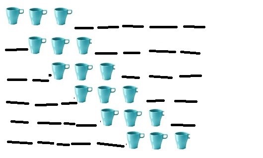 Hej, förstår inte riktigt vad de vill veta av frågan, menar de antal sätt att ordna kopparna på så att samma färger ska vara placerade intill varandra, så t.ex BBBGGGGSS ?