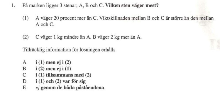 Räcker detta inte då för att kunna säga att B väger mer än A som väger mer än C? Enligt facit är svaret B.