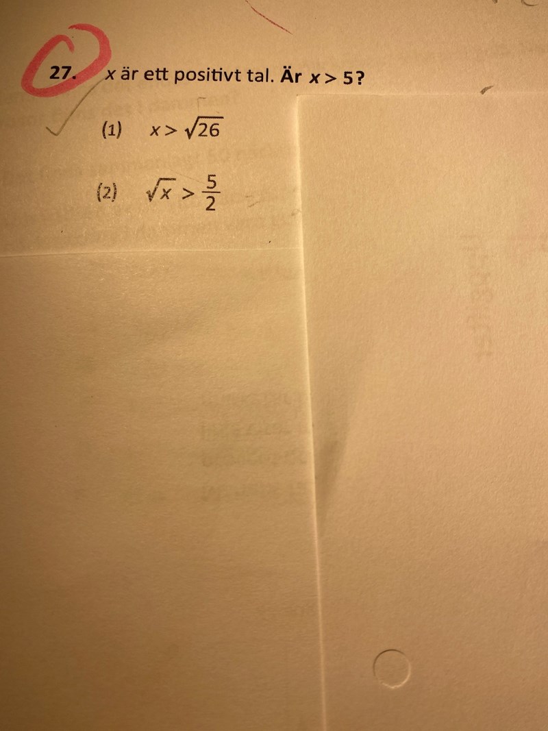 Eftersom roten ur 26 är större än 5 så har man ju svaret att x>5