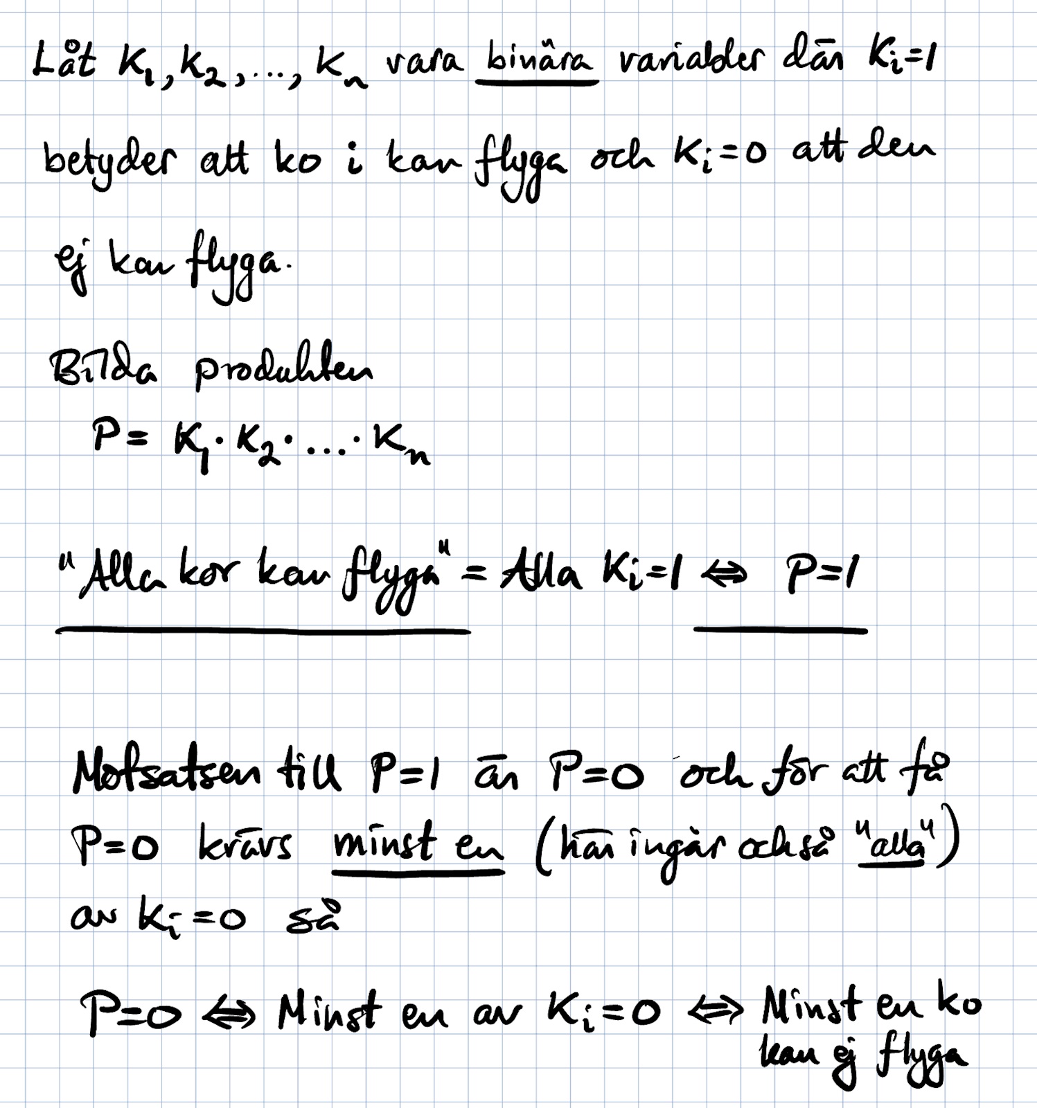 Om jag har '10 kor som jag vet kan flyga'. Sen tänker vi den exakta motsatsen till detta. Jag ponerar så logiskt jag kan utan matte magi...