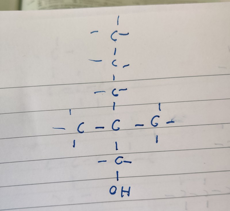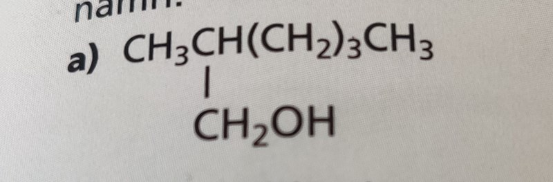 Jag fattar riktigt inte hur denna molekyl skulle se ut. Jag fattar att (CH2)3 sitter på kolatom nummer 2. Sedan vet jag riktigt inte vad CH2OH är för något. Vid första tanke är det en metanol som är en substituent?