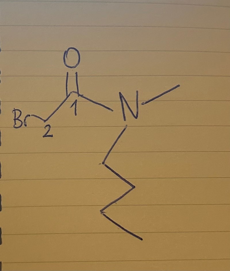 Jag har en fråga, behöver rita 2-bromo-N-butyl-N-metyl-etanamid. Kan någon titta om jag har tittat korrekt eller inte?