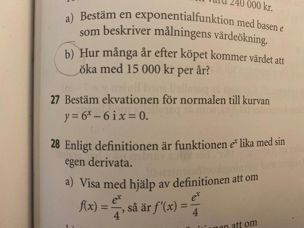 Men lägg märke till att de frågar efter normalen vid x = 0.