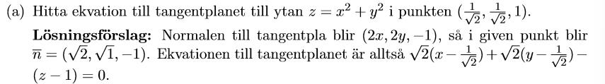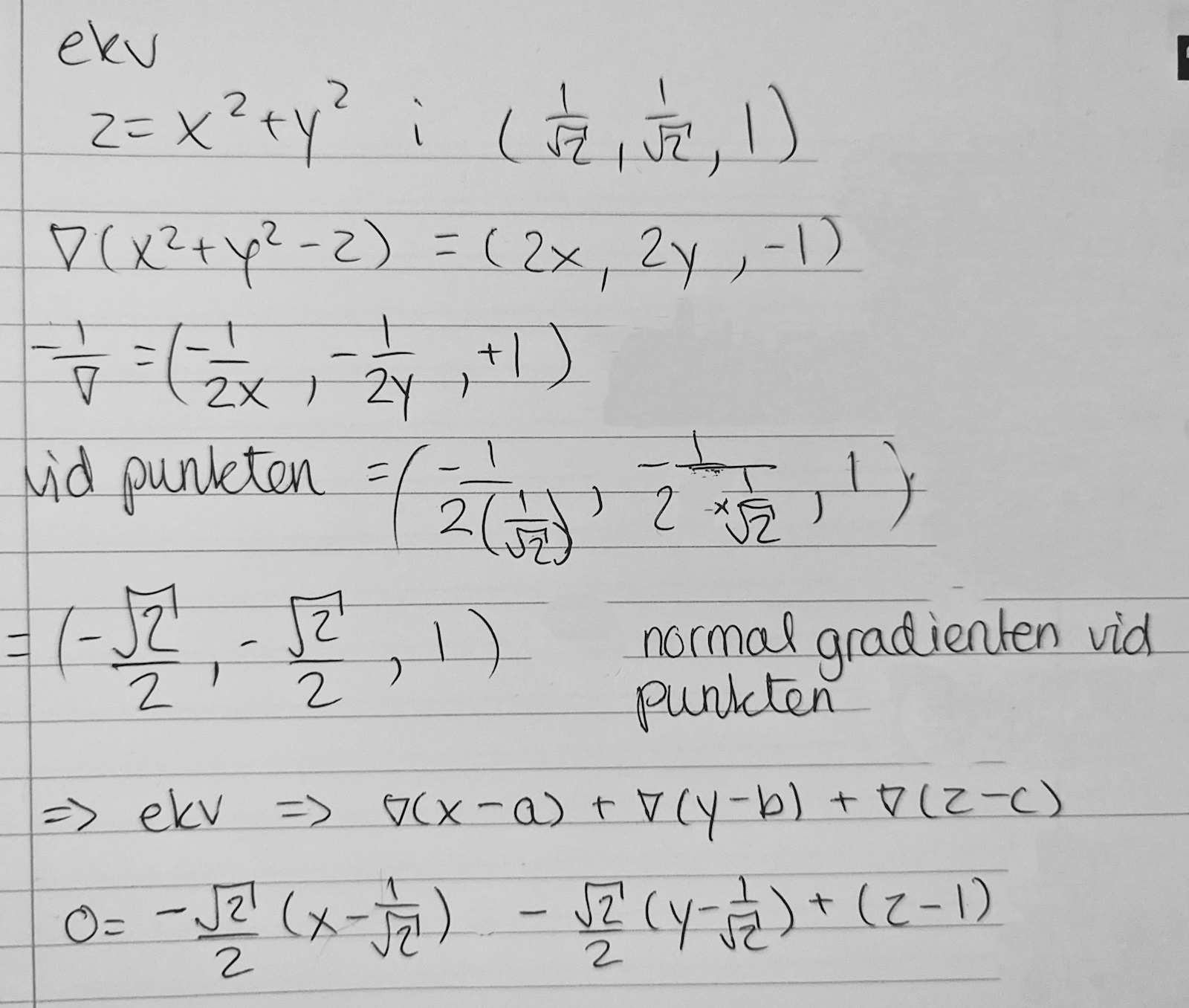 (jag ser att det stämmer matamatiskt, men hon ber om tangentplanet , och jag trodde tangent gradient och normal gradient var olika... hur skulle man bara få den vanliga gradienten vid den punkten isf om normalgradienten är bara derivatan?)