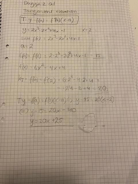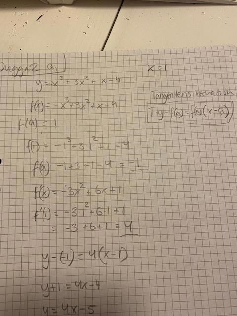 Jag gjorde såhär för att räkna ut tangentens ekvation.
