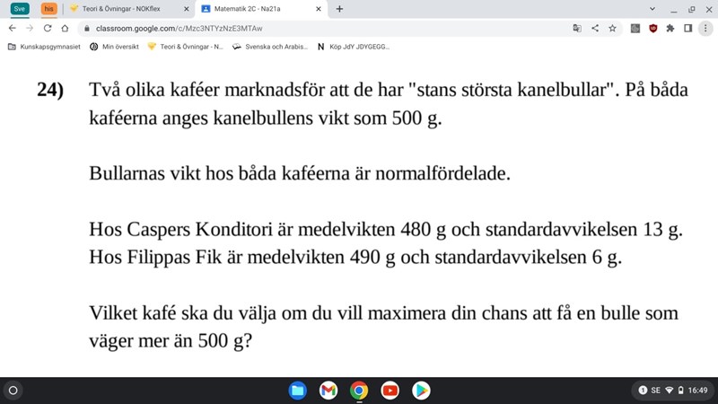 Precis. När du vet det så kan du bestämma vems bullar som har störst chans att väga över 500 g.