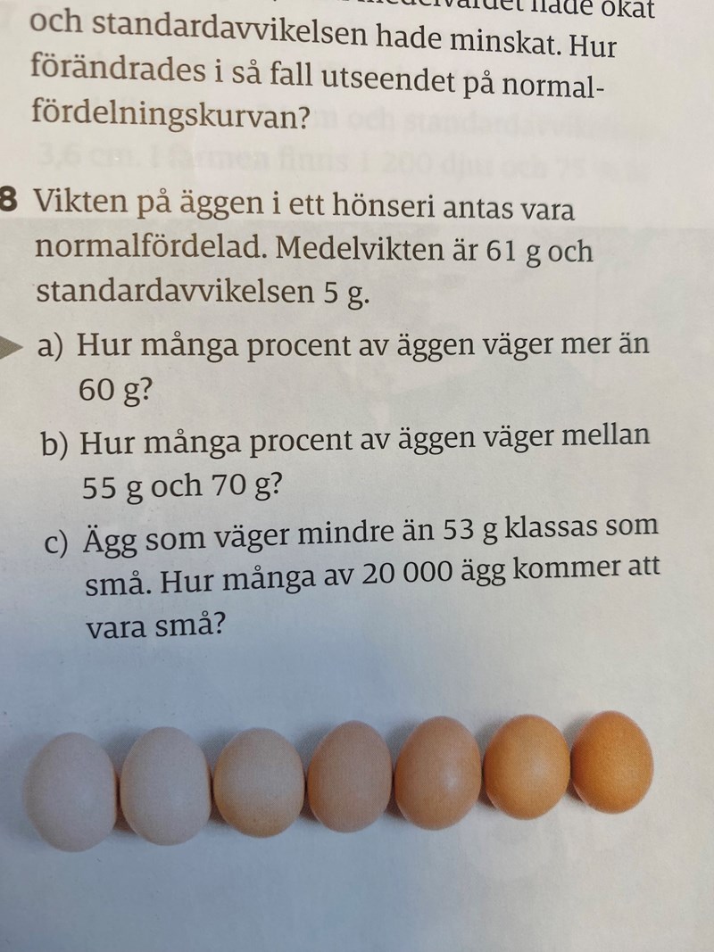 I ma2 brukar man låta avvikelserna vara multiplar av 1 standardavvikelse, eftersom det är detta man kan se på diagrammet i formelsamlingen. Är du säker på att detta är en ma2-uppgift?