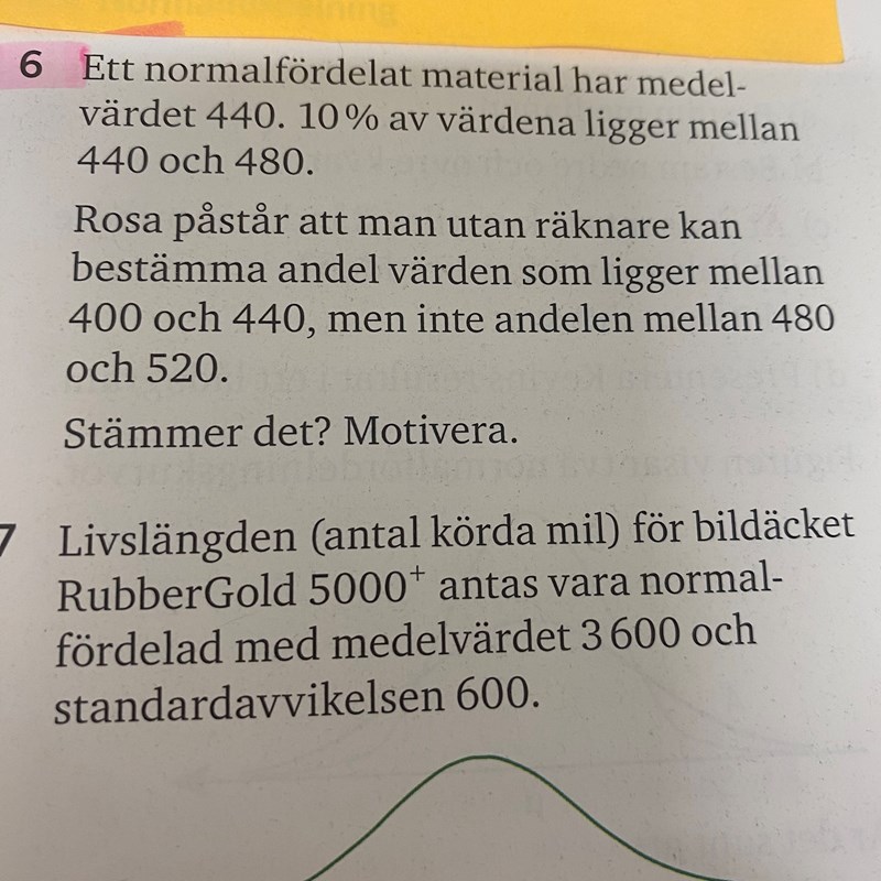 Eftersom normalfördelningen är symmetrisk kring 440, så är det lika stor andel mellan 400 och 440 som mellan 440 och 480.