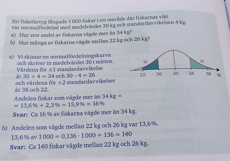 Nej precis tänkte också det. Men utgick från en diagram i boken som säger 34,1% + 13,6% + 2,3%. Tack!