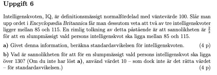 okej så om vi hade undersökt att intelligenskvoten skulle vara mindre än 130 då hade svaret blivit 0.9738?