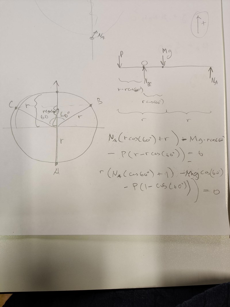 Men nu får jag N_a i termer av sträckorna (under förutsättning en att jag gjort rätt), det ska vara i termer av m,g och P! Tänker jag rätt på bilden? Hur kommer jag vidare?