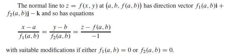 Den duken har normalvektor (df/dx, df/dy, df/dz) = (f1 , f2 , –1) i punkten (a, b, f(a,b)).