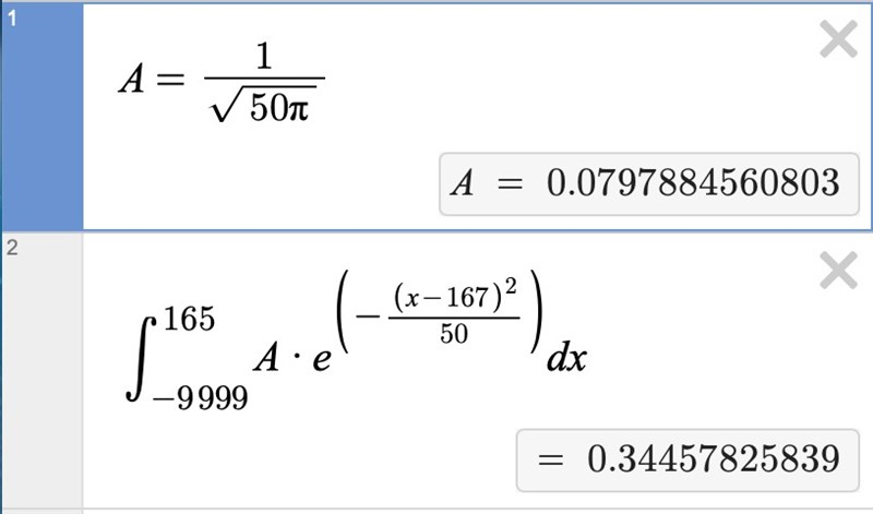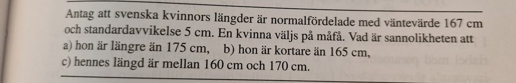 Smutstvätt skrev:Nej, det kan inte stämma. När jag slår in samma beräkning får jag ungefär 0,34. Normalfördelningens täthetsfunktion är aldrig negativ, och integralen över den ska i denna typ av uppgifter beräknas från negativ oändlighet.