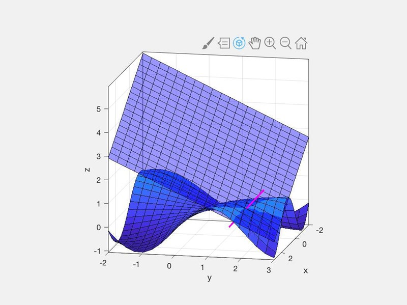 Har använt följande kod för att rita upp tangentplan och normalvektor till en funktion: