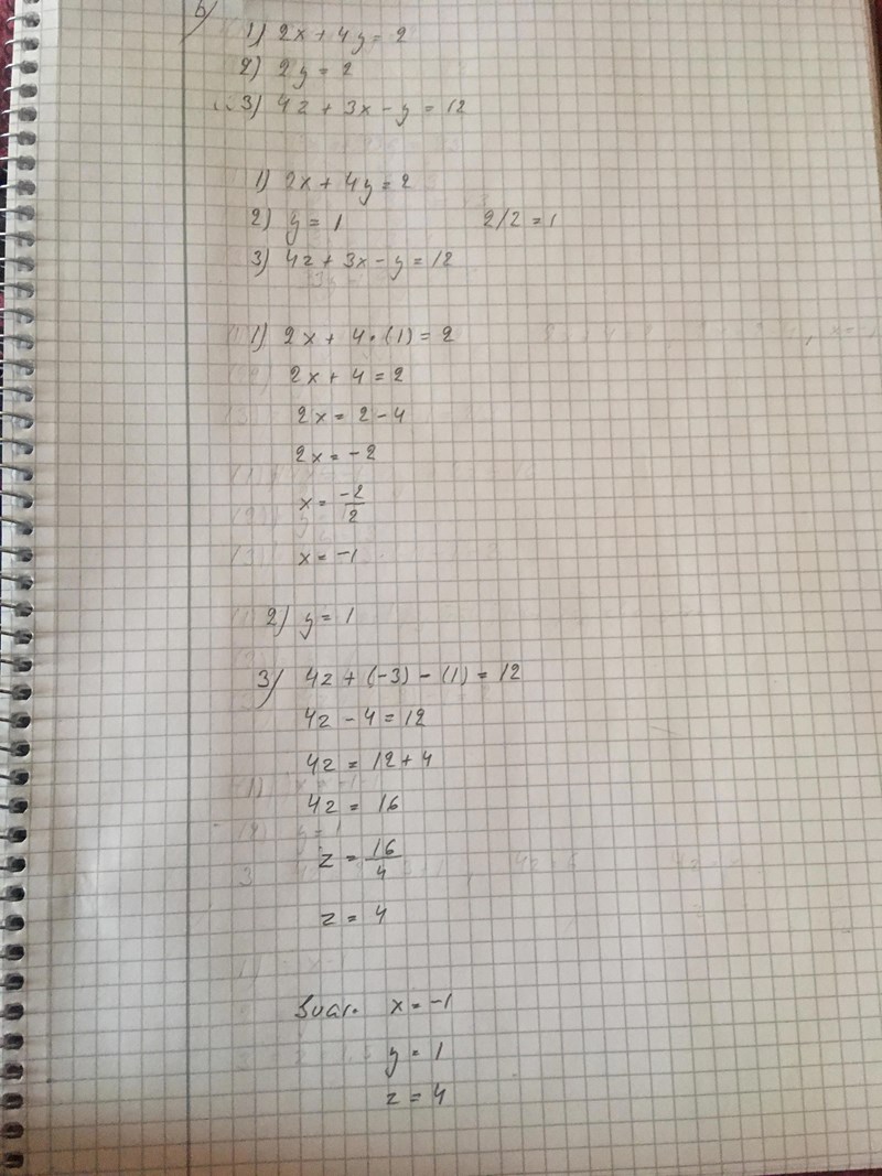 Ekvation a) har bara två obekanta för x=2 är ju redan känd