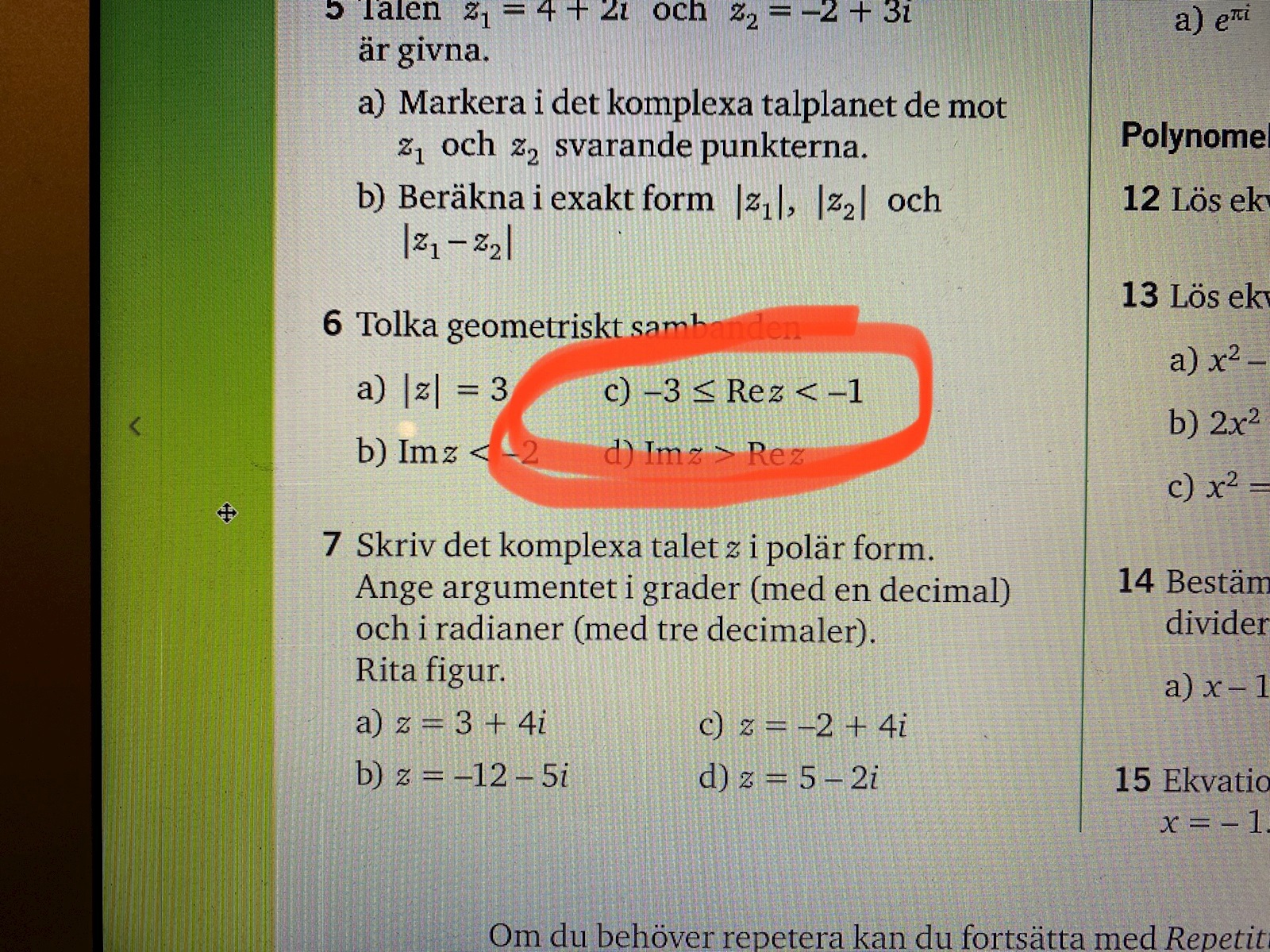 asså jag fattar inte hur det kan bli från -3 till +1?? Hur kan z plötsligt vara större än (-1) som det står på frågan? som ni ser har jag svarat att z kan vara lika med -3 men måste vara under -1, alltså under -1 med den punktade linjen. Hur kan svaret vara -3<z<1 och inte -3<z<-1??