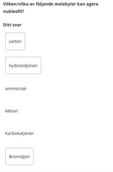 Varför får jag inte rätt på denna? Ammoniak, metan och karbokatjoner kan väl inte agera nukleofila?