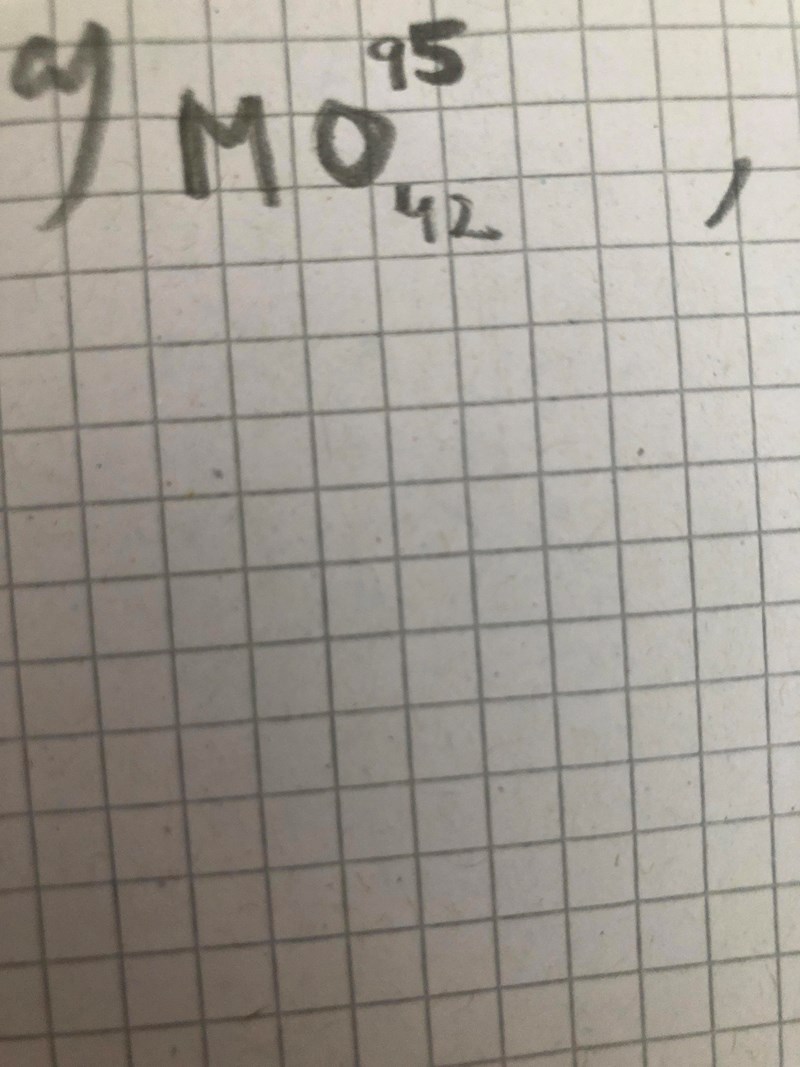 Jo, det skall vara 42 protoner. Varför tror du att det skall vara 45? Men det är viktigt att skriva siffrorna till vänster om Mo, inte till höger.